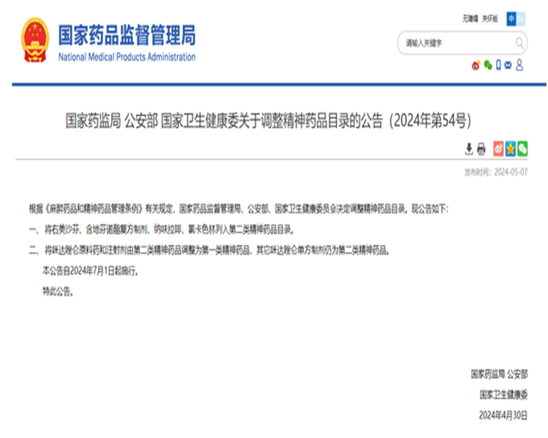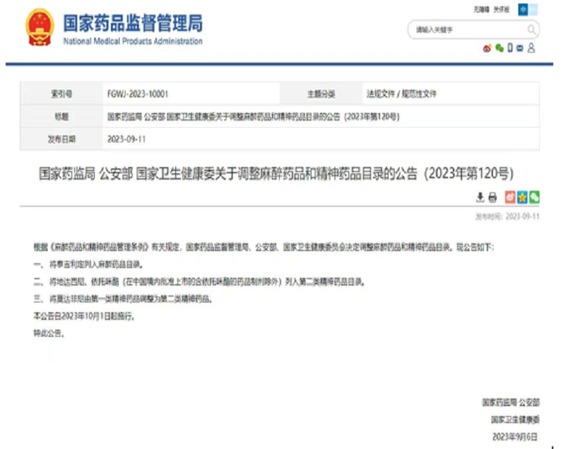 緊跟中國禁毒步伐,華儀寧創(chuàng)快速響應(yīng)一線實(shí)戰(zhàn)征召 三部門聯(lián)合發(fā)布 2024-06-20 《關(guān)于將溴啡等46種物質(zhì)列入〈非藥用類麻醉藥品和精神藥品管制品種增補(bǔ)目錄〉的公告》為嚴(yán)防新精神活性物質(zhì)濫用蔓延,打擊相關(guān)犯罪活動(dòng),公安部、國家衛(wèi)生健康委員會(huì)和國家藥品監(jiān)督管理局于2024年6月16日聯(lián)合發(fā)布《關(guān)于將溴啡等46種物質(zhì)列入〈非藥用類麻醉藥品和精神藥品管制品種增補(bǔ)目錄〉的公告》,決定新增列管溴啡等46種新精神活性物質(zhì),公告自2024年7月1日起施行。附件:關(guān)于將溴啡等46種物質(zhì)列入《非藥用類麻醉藥品和精神藥品管制品種增補(bǔ)目錄》的公告關(guān)于將溴啡等46種物質(zhì)列入《非藥用類麻醉藥品和精神藥品管制品種增補(bǔ)目錄》的公告… 查看詳情