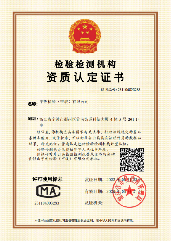 喜報 | 華儀寧創(chuàng)順利通過CMA資質認證! 2023-05-24 近日,寧波華儀寧創(chuàng)智能科技有限公司(以下簡稱“華儀寧創(chuàng)”)全資子公司寧創(chuàng)檢驗順利通過浙江省市場監(jiān)督管理局檢驗檢測機構資質評審,成功獲得CMA資質認定證書。這是對華儀寧創(chuàng)硬件設施先進性、質量管理有效性以及檢測人員專業(yè)性的充分肯定,標志著華儀寧創(chuàng)的檢測水平邁上了一個全新臺階,能為用戶提供更加專業(yè)且全面的檢測服務。寧創(chuàng)檢驗CMA資質認定證書CMA資質的順利通過,一方面是政府部門對華儀寧創(chuàng)的研發(fā)能力和技術實力的肯定與認可;另一方面華儀寧創(chuàng)也將不斷提升自主檢測能力,拓展檢測領域范圍,為食藥環(huán)、禁毒提供有力的檢測保障… 查看詳情