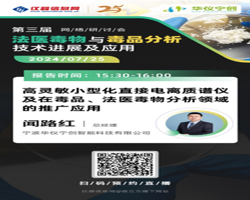 會(huì)議邀請(qǐng) | 華儀寧創(chuàng)邀您參加第三屆法醫(yī)毒物與毒品分析技術(shù)進(jìn)展及應(yīng)用研討會(huì) 2024-07-23 為了促進(jìn)法醫(yī)毒物與毒品分析等領(lǐng)域的技術(shù)交流與合作,儀器信息網(wǎng)將于7月25日組織召開“法醫(yī)毒物與毒品分析技術(shù)進(jìn)展”主題網(wǎng)絡(luò)研討會(huì)。本次會(huì)議將邀請(qǐng)國(guó)內(nèi)外知名專家就法醫(yī)毒物和毒品分析技術(shù)的最新進(jìn)展、挑戰(zhàn)和未來發(fā)展趨勢(shì)進(jìn)行深入研討。作為公安禁毒領(lǐng)域科技創(chuàng)新優(yōu)秀企業(yè)代表,寧波華儀寧創(chuàng)智能科技有限公司總經(jīng)理聞路紅教授受邀將在本次會(huì)議中作《高靈敏小型化直接電離質(zhì)譜儀及在毒品、法醫(yī)毒物分析領(lǐng)域的推廣應(yīng)用》主題報(bào)告,與大家分享華儀寧創(chuàng)自主研發(fā)小型化直接電離質(zhì)譜儀在毒品檢測(cè)、法醫(yī)毒物分析等領(lǐng)域的實(shí)戰(zhàn)優(yōu)勢(shì)和應(yīng)用案例。歡迎… 查看詳情