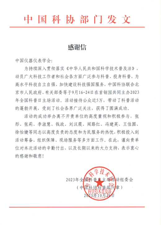 此次科普日活動觀眾量近5萬人次,華儀寧創(chuàng)接待觀眾近2萬,現(xiàn)場反響異常熱烈。許多學(xué)生和家長結(jié)束參觀后,在現(xiàn)場媒體的采訪中都會介紹到,在參觀途中令自己印象最深刻的是禁毒黑科技展區(qū)?;顒咏Y(jié)束后,華儀寧創(chuàng)收到了來自中國科協(xié)的感謝信。