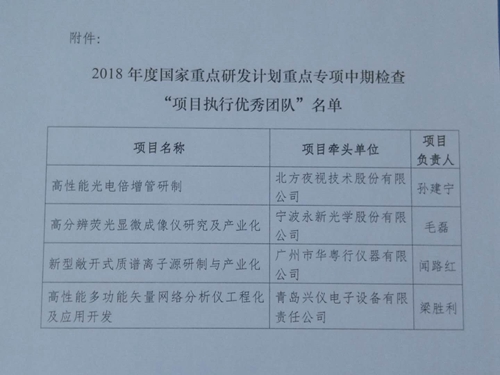 2019年5月30日全國(guó)科技工作者日,國(guó)家科技部高技術(shù)中心召開會(huì)議表彰在2018年國(guó)家重點(diǎn)專項(xiàng)中期檢查中表現(xiàn)突出的國(guó)家重點(diǎn)研發(fā)計(jì)劃項(xiàng)目承擔(dān)團(tuán)隊(duì),并頒發(fā)了獎(jiǎng)牌。其中國(guó)家“重大科學(xué)儀器設(shè)備開發(fā)”重點(diǎn)研發(fā)計(jì)劃專項(xiàng)有四個(gè)項(xiàng)目受到表彰,我公司總經(jīng)理聞路紅教授負(fù)責(zé)的“新型敞開式質(zhì)譜離子源研制與產(chǎn)業(yè)化”項(xiàng)目是其中之一。