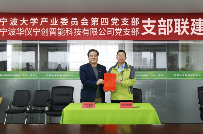 2024年4月28日上午,中共寧波華儀寧創(chuàng)智能科技有限公司黨支部(以下簡稱華儀寧創(chuàng)黨支部)與中共寧波大學(xué)產(chǎn)業(yè)黨委第四黨支部(以下簡稱第四黨支部)在華儀寧創(chuàng)舉行了黨建聯(lián)建簽約儀式,進(jìn)一步加強(qiáng)黨建引領(lǐng),落實(shí)新時代黨建總要求,為推動科技聯(lián)動黨建工作方式提供新途徑。寧波大學(xué)產(chǎn)業(yè)黨委副書記盧高挺、黨委委員陳忠、葉春陽、第四黨支部書記應(yīng)國勇及全體黨員、寧波大學(xué)機(jī)關(guān)黨委資產(chǎn)與實(shí)驗(yàn)室管理處黨支部虞龍、徐三強(qiáng)等黨員代表、華儀寧創(chuàng)黨支部書記聞路紅,副書記范國正、委員劉云、王佳圓、馮建英及黨員代表參會,黨外人士寧波大學(xué)地基處理中心總經(jīng)理錢寶源、李琦等列席參加。