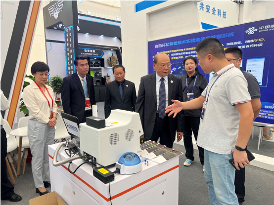 作為我國(guó)公共安全領(lǐng)域科技創(chuàng)新的優(yōu)秀企業(yè)代表,華儀寧創(chuàng)攜我司多款自主原創(chuàng)的禁毒工作利器——小型化直接電離質(zhì)譜儀、手機(jī)APP驗(yàn)毒套件等產(chǎn)品亮相本屆裝備展,吸引了眾多參會(huì)者駐足圍觀。展會(huì)期間,大會(huì)主席帶隊(duì)參觀我司小質(zhì)譜展臺(tái),在聽完工作人員對(duì)產(chǎn)品的詳細(xì)講解后,領(lǐng)導(dǎo)團(tuán)成員對(duì)我司研發(fā)產(chǎn)品表示高度認(rèn)可。