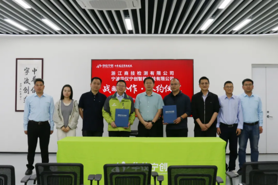 2025年4月10日下午,浙江商技檢測有限公司(以下簡稱“浙江商技檢測”)與寧波華儀寧創(chuàng)智能科技有限公司(以下簡稱“華儀寧創(chuàng)”)舉行戰(zhàn)略合作簽約儀式。出席本次簽約儀式的有:寧波市市場監(jiān)督管理局食品安全協(xié)調(diào)處副處長鄭睿行、浙江商技檢測黨支部書記、董事長兼總經(jīng)理瞿煒峰、副總經(jīng)理張達(dá)、華儀寧創(chuàng)總經(jīng)理聞路紅、副總經(jīng)理甘劍勤以及合作雙方相關(guān)部門的負(fù)責(zé)人。