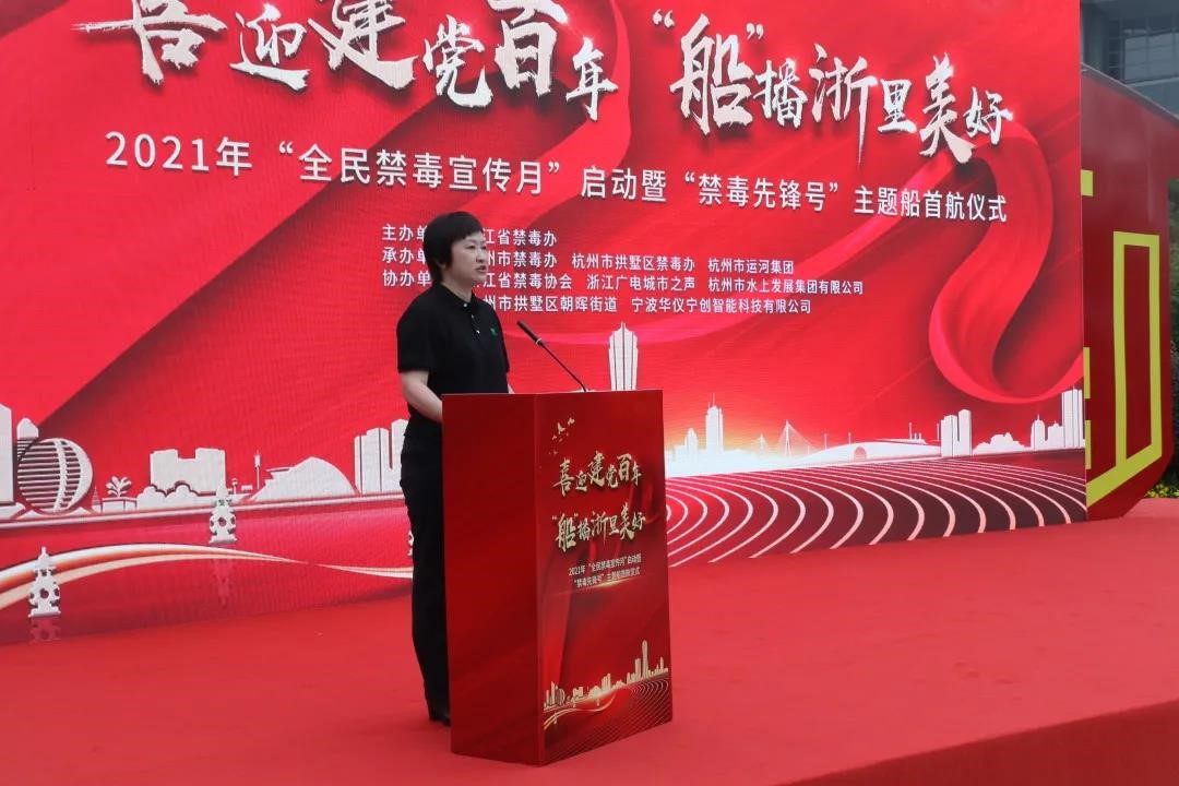 6月2日上午,由浙江省禁毒辦主辦,杭州市禁毒辦、杭州市拱墅區(qū)禁毒辦、杭州市運(yùn)河集團(tuán)承辦,浙江省禁毒協(xié)會(huì)等單位協(xié)辦的2021年浙江省“全民禁毒宣傳月”啟動(dòng)暨“禁毒先鋒號(hào)”主題船首航儀式活動(dòng)在杭州西湖文化廣場舉行。浙江省禁毒委副主任、公安廳副廳長劉靜,省禁毒委委員、省婦聯(lián)副主席童麗君,省禁毒辦常務(wù)副主任、公安廳禁毒總隊(duì)總隊(duì)長陳斌等領(lǐng)導(dǎo)和來自全省的禁毒民警代表、禁毒講師代表、志愿者代表等300余人參加了本次活動(dòng)。