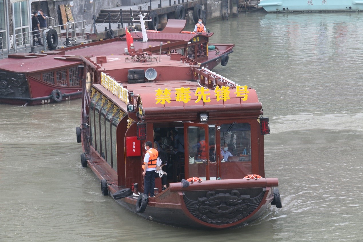“禁毒先鋒號(hào)”主題船首航儀式在活動(dòng)中同期舉行?!敖鞠蠕h號(hào)”主題船作為禁毒教育、禁毒科普的流動(dòng)展廳,向群眾宣傳吸毒危害、防范毒品、毒品法規(guī)、毒品檢測等多方面科學(xué)內(nèi)容,營造了更為濃厚的禁毒宣傳教育新氛圍。
