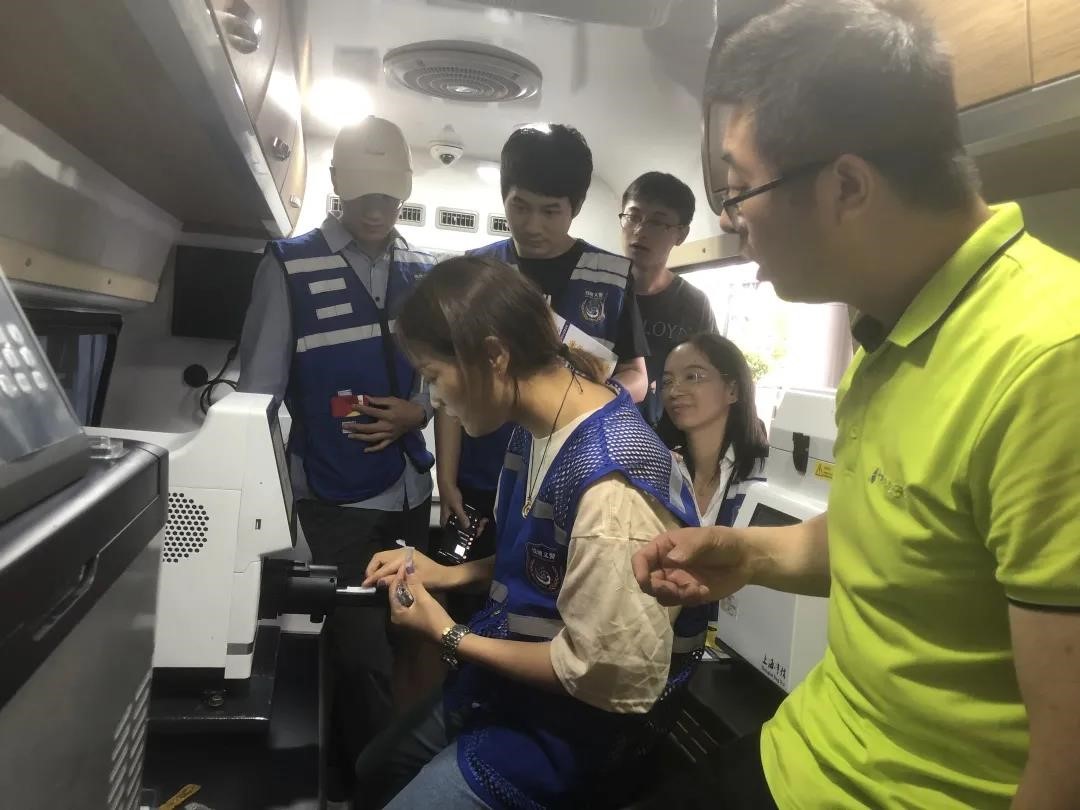 幾位來自杭州電子科技大學(xué)的研究生同學(xué),對毒品防控移動實(shí)驗(yàn)室中裝配的“黑科技”設(shè)備產(chǎn)生了濃厚的興趣。他們說:“我們就是儀器自動化專業(yè)的學(xué)生,看到這樣的實(shí)戰(zhàn)設(shè)備,比看課本來勁多了?!彼麄儾煌5脑儐栔銛y式質(zhì)譜儀的檢測原理、產(chǎn)品性能,積極的嘗試檢測。在看到自己的唾液樣本有“無毒品檢出”的顯示后,大家變得異常興奮。同學(xué)們表示:“我們已經(jīng)成為這個禁毒科技成果的粉絲了。我們以后不僅要宣傳禁毒、科普禁毒,還要努力投身到國產(chǎn)禁毒科技的創(chuàng)新中,用自己所學(xué)為國家做貢獻(xiàn)!科技興邦、產(chǎn)業(yè)報國,有我們一份子!”