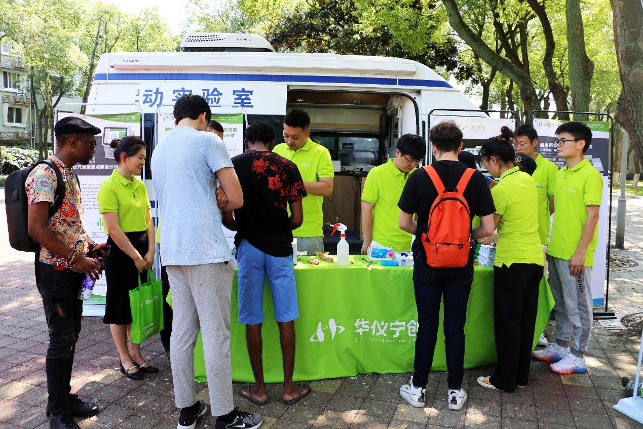 華儀寧創(chuàng)禁毒科普公益小分隊帶來的毛發(fā)毒品檢測裝備激發(fā)了廣大師生特別是留學(xué)生的好奇心。一位留學(xué)生在聽到幾根毛發(fā)就可以測出是否有吸毒史后,表示極為驚訝,并積極申請做一下體驗。當(dāng)他快速準(zhǔn)確檢測出標(biāo)準(zhǔn)樣本的毒品數(shù)值后,發(fā)出了“unbelievable(不可思議)”的稱贊。當(dāng)他們又了解到這些禁毒裝備都是寧波大學(xué)的科技成果轉(zhuǎn)化產(chǎn)品,更是挑起了大拇指,對母校和華儀寧創(chuàng)發(fā)出了由衷的贊嘆。