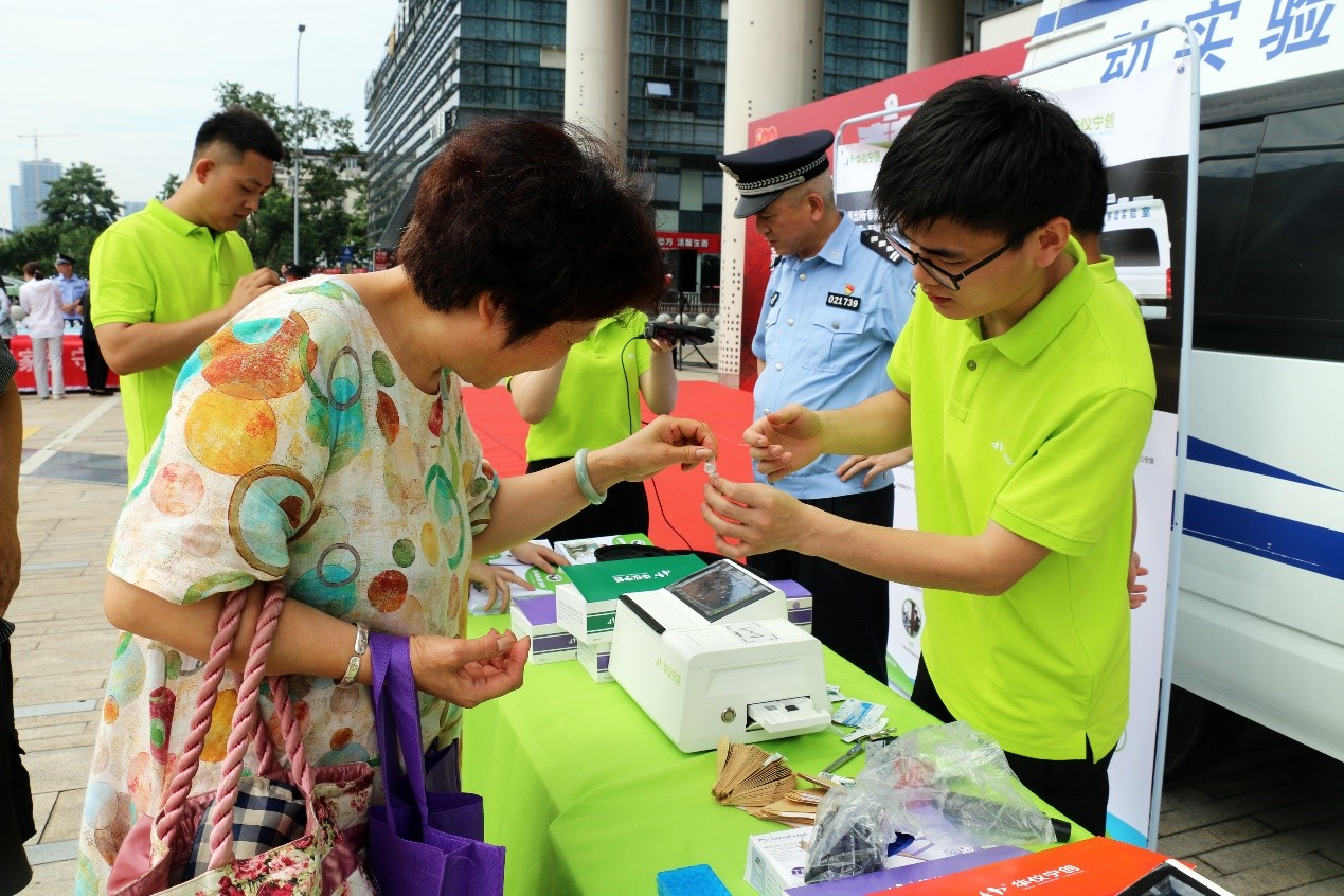 此外,華儀寧創(chuàng)禁毒科普志愿者們帶來的“禁毒黑科技”引發(fā)了圍觀和體驗大潮,現(xiàn)場熱鬧非凡。各位市民朋友聽說幾根頭發(fā)和一些唾液就能快速測出是否吸毒,而且還能自己操作,紛紛排隊親自試驗。當看到自己的毛發(fā)、唾液樣本在禁毒黑科技上有“無毒品檢出”的顯示后,大家變得異常興奮,紛紛表示“我們是好市民,不吸毒,我們可以現(xiàn)場證明給你們看的”。