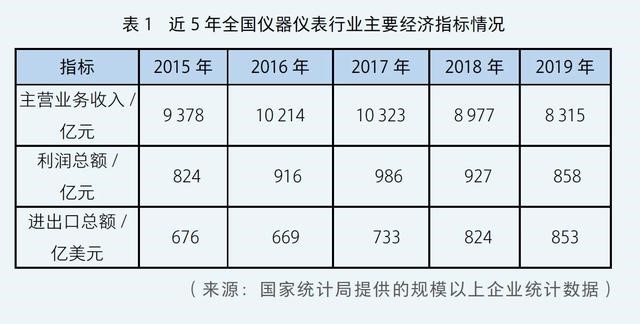 隨著我國(guó)國(guó)民經(jīng)濟(jì)的快速發(fā)展和高新技術(shù)產(chǎn)業(yè)的迅速成長(zhǎng),我國(guó)儀器儀表行業(yè)近年來一直保持比較好的增長(zhǎng)態(tài)勢(shì),產(chǎn)業(yè)規(guī)模已經(jīng)成為國(guó)際上行業(yè)規(guī)模最大的國(guó)家之一,也是發(fā)展中國(guó)家儀器儀表行業(yè)規(guī)模最大、產(chǎn)品品種最齊全的國(guó)家。2015—2019年儀器儀表行業(yè)經(jīng)濟(jì)運(yùn)行情況見表1。