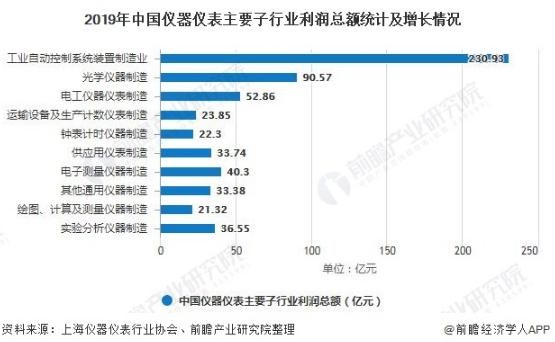 從利潤(rùn)總額來看,工業(yè)自動(dòng)控制系統(tǒng)裝置制造行業(yè)利潤(rùn)總額同樣在儀器儀表子行業(yè)中排名第一,2019年實(shí)現(xiàn)利潤(rùn)總額230.93億元,同比下降3.72%。從增幅來看,光學(xué)儀器制造行業(yè)利潤(rùn)增幅最大,較2018年同比增長(zhǎng)58.94%。