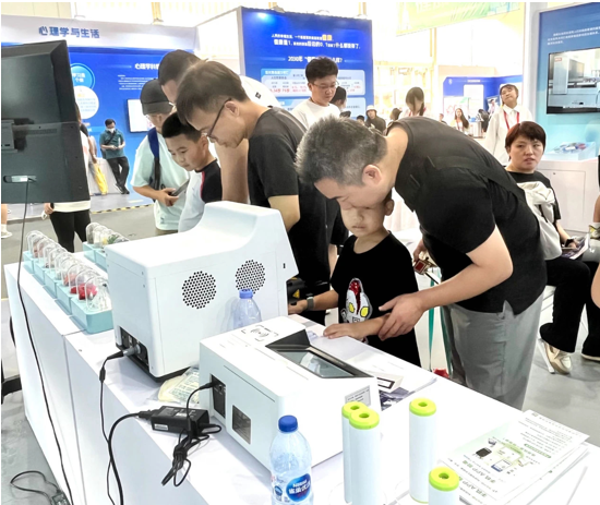 此次科普活動,華儀寧創(chuàng)展區(qū)以毛發(fā)毒品快速篩查質(zhì)譜儀、便攜式毒品檢測一體機(jī)、手機(jī)APP驗(yàn)毒、仿真毒品模型、禁毒科普宣傳視頻為主要展出形式,吸引了大量觀眾駐足圍觀?;顒蝇F(xiàn)場,眾多學(xué)生和家長對禁毒知識表現(xiàn)出濃厚興趣,許多家長會向工作人員咨詢禁毒相關(guān)知識及科學(xué)儀器的工作原理,并與自己的孩子進(jìn)行討論學(xué)習(xí)。
